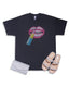 Red and Pink Lips with Red and Pink Lipstick Rhinestone T-shirt; Design LIPS-6