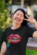 Pink Lips Pink Lipstick Rhinestone T-shirt; Design LIPS-7