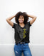 To prolong the life of your garment, please machine wash (inside out) in cold water on a delicate cycle or hand wash your rhinestone T-shirt. Do not bleach. Do not use fabric softener (as this leaves a waxy residue and may eventually loosen the stones). Hang to dry. Do not iron directly on the design.